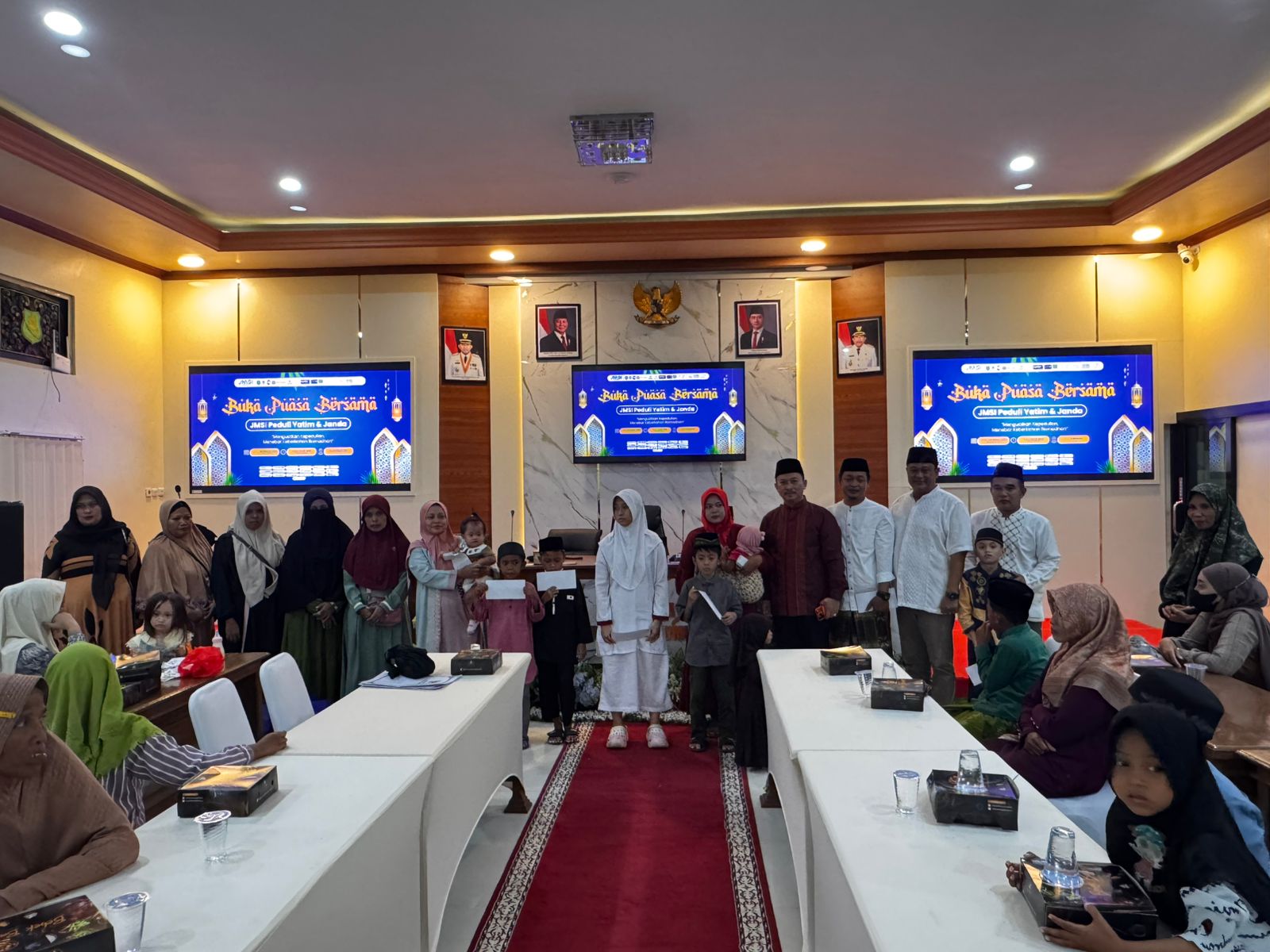 Dalam kegiatan itu, puluhan anak yatim dan janda menerima santunan sebagai bentuk kepedulian sosial. Para peserta juga mengikuti tausiah keagamaan sebelum berbuka puasa bersama.
