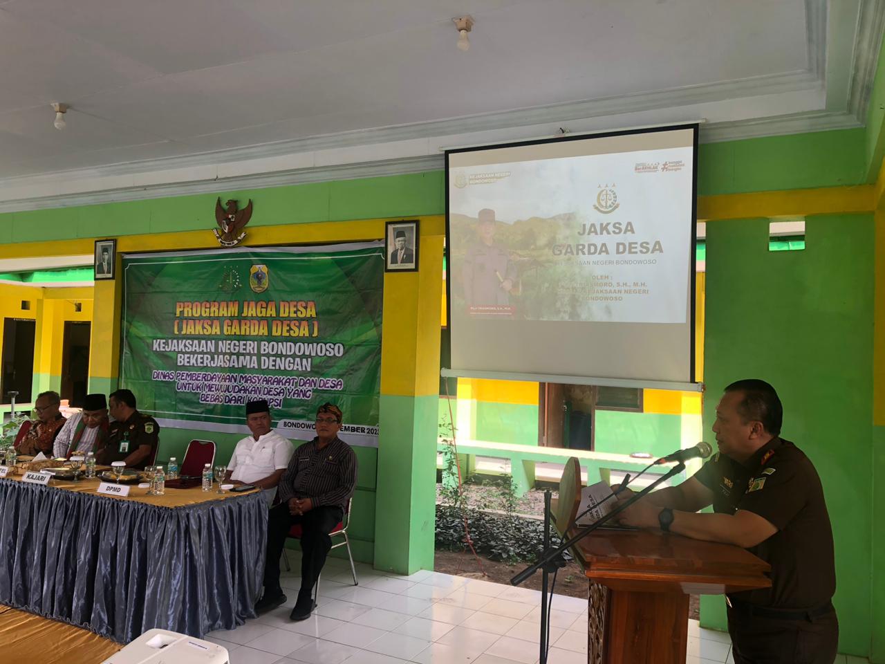 AREANEWS.ID, BONDOWOSO – Kejaksaan Negeri (Kejari) Bondowoso, Jawa Timur menggandeng Dinas Pemberdayaan Masyarakat dan Desa (DPMD) memberikan arahan terhadap pemerintah desa melalui program Jaksa Garda Desa (Jaga Desa), di Pendopo Kecamatan Jambesari Darus Sholah pada Kamis, 9 November 2023.