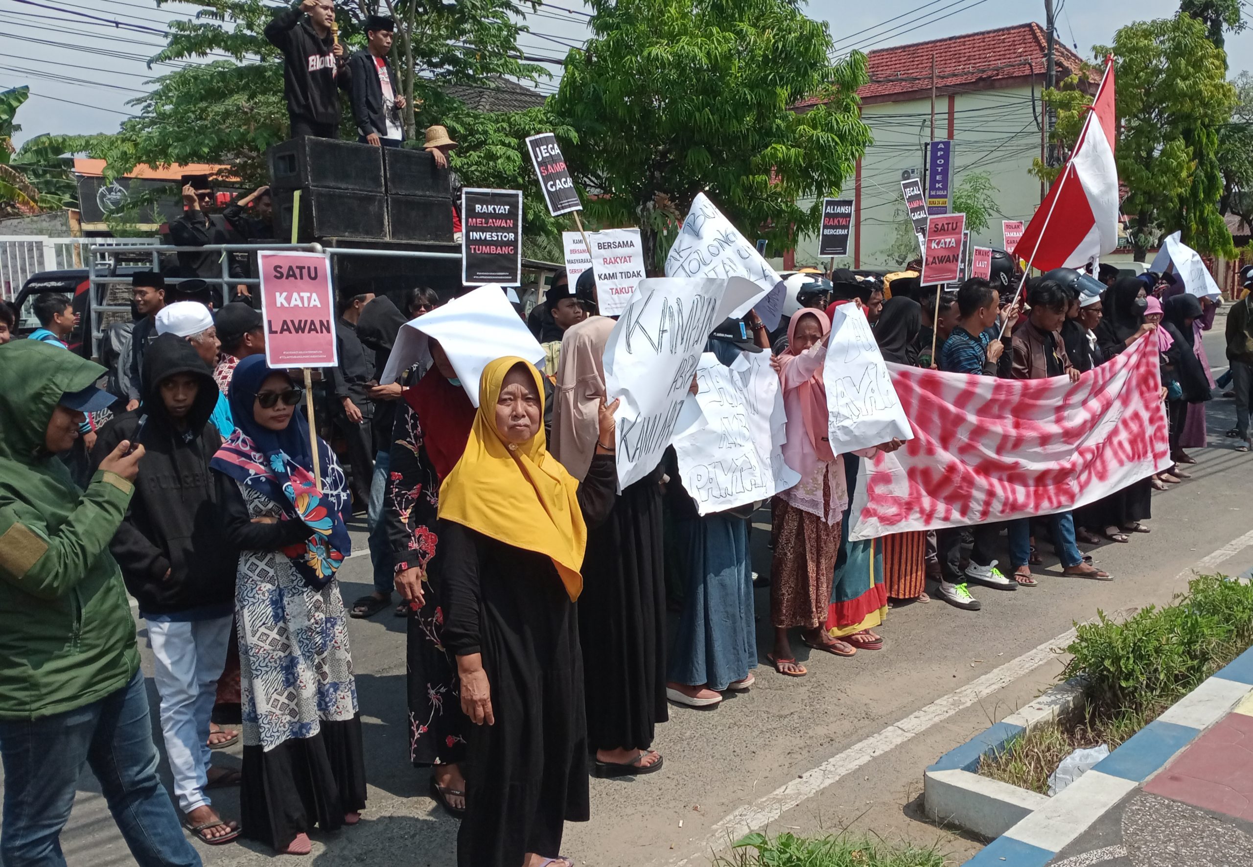 Dalam aksi tersebut, massa aksi membentangkan spanduk panjang tertulis ”Anak Cucu Kami Tidak Butuh Tambak, Tapi Butuh Pantai”. Sejumlah poster berisi aspirasi dan protes juga dibawa, intinya mereka mengecam rencana reklamasi laut dan penerbitan SHM oleh BPN.
